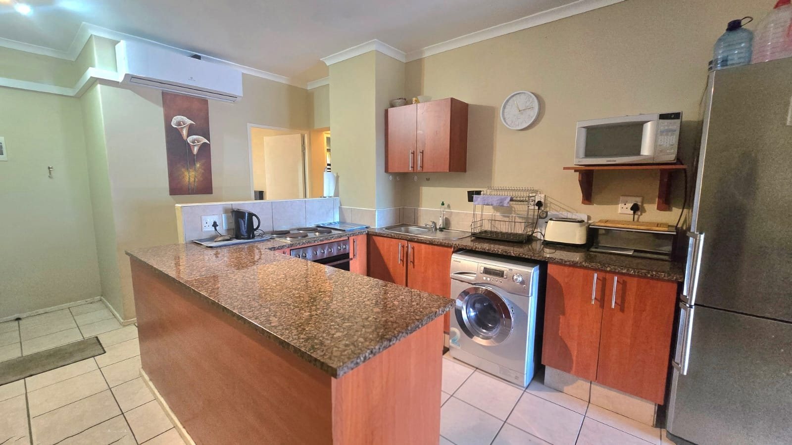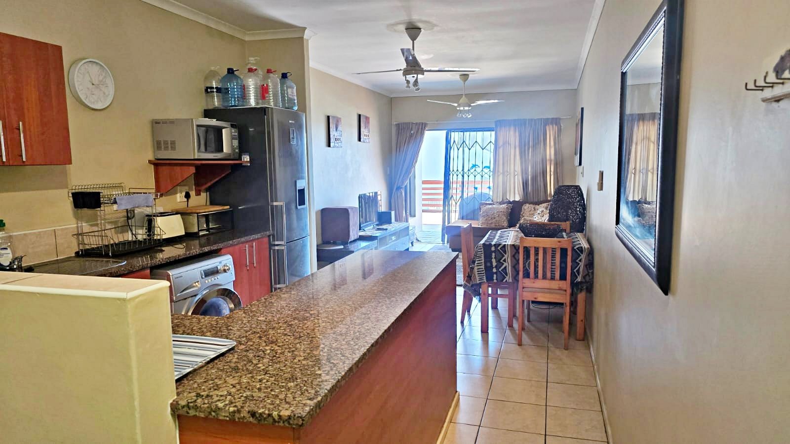Security is a top priority here, with 24-hour security, an access gate, and a security gate on the unit itself, giving you peace of mind. Plus, there's dedicated parking for one vehicle. The complex has a modern feel with well-maintained grounds and buildings, all set amidst lush greenery leading right to the beach. Winklespruit, located in Kingsburgh, South Africa, is known for its beautiful beaches and laid-back atmosphere, offering a wonderful blend of convenience and seaside charm. Walking distance to the mall, plus drs rooms and a pharmacy. Excellent for retirement or for holiday letting.