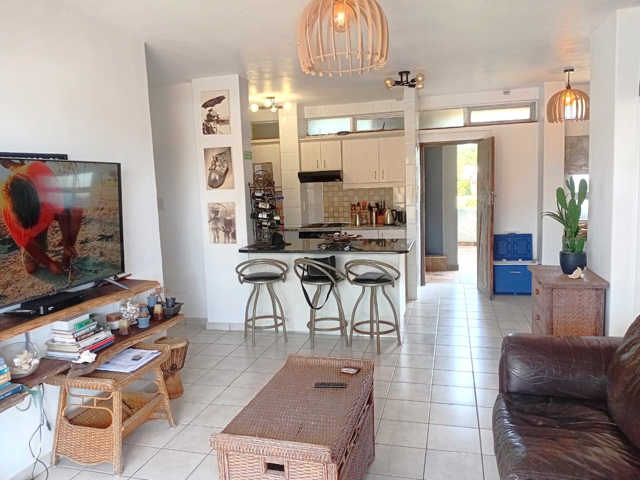The apartment is fully tiled and offers two bathrooms—one with a shower and the other with a bath—providing comfort and convenience. The modern open-plan kitchen boasts granite counter-tops and a breakfast nook overlooking the lounge, creating a welcoming space for everyday living. The lounge flows seamlessly onto the large patio, ideal for entertaining or enjoying sun-downers while taking in the uninterrupted sea views.